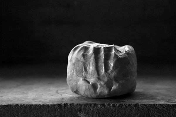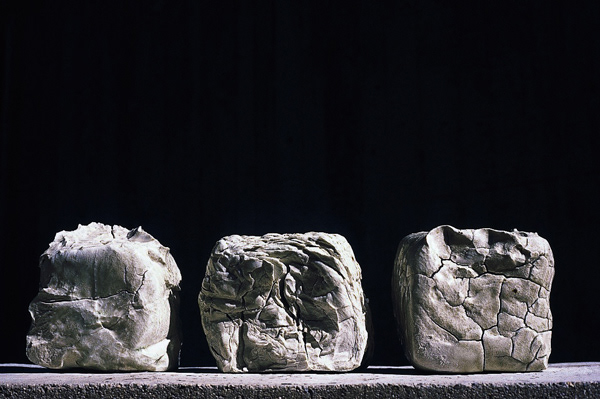Des blocs informes de terre de porcelaine, posées dans la neige, gèlent, craquèlent, suivant les logiques formelles de la nature ...